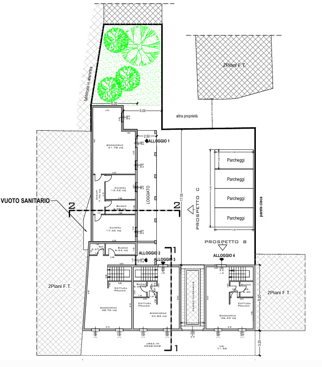 - Progetto approvato che prevede la realizzazione di 4 unità abitative con aree parcheggi.